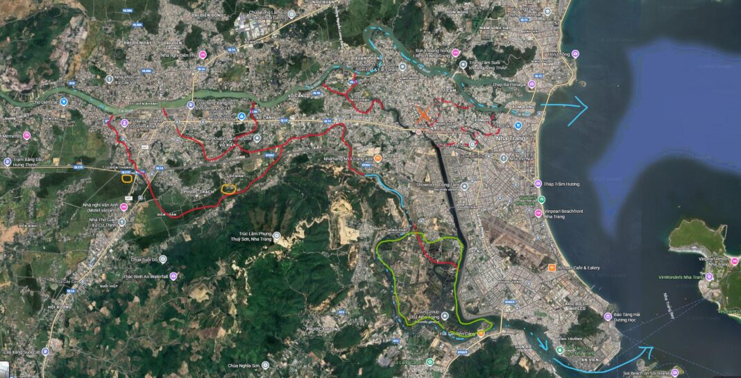 Một trong những đề xuất về quy hoạch của mình từ ngày đó chính là việc tìm cách để bảo vệ khu dân cư phía Tây Nha Trang thoát cảnh ngập lũ và chịu thiệt hại nặng nề như ngày hôm nay. Dự án cần sớm thực hiện đó là khơi thông các đầu nguồn sông Quán Trường và sông Tắc (đánh đấu đỏ trong bản đồ) và từ Diên Khánh-Diên An đến Vĩnh Thạnh sẽ kết nối thêm (bằng khơi lại các đoạn kênh đã bị lấp lẫn kênh đào mở mới) nhiều nhánh nhỏ với sông Cái-con sông chính của thành phố. Khi mưa cực đoan-xả đập, nước lũ ùa về đến phía thượng nguồn Diên Khánh đã được chia bớt để chảy ra cửa biển Vĩnh Trường/ Cửa Bé.