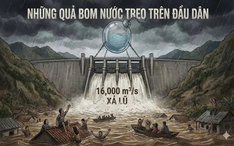 Khi những hồ chứa đồng loạt mở van xả, nước không còn là dòng chảy tự nhiên mà biến thành những dòng thác nhân tạo lao thẳng xuống hạ du. Người dân chỉ có vài giờ, thậm chí vài chục phút, để chạy khỏi nhà.