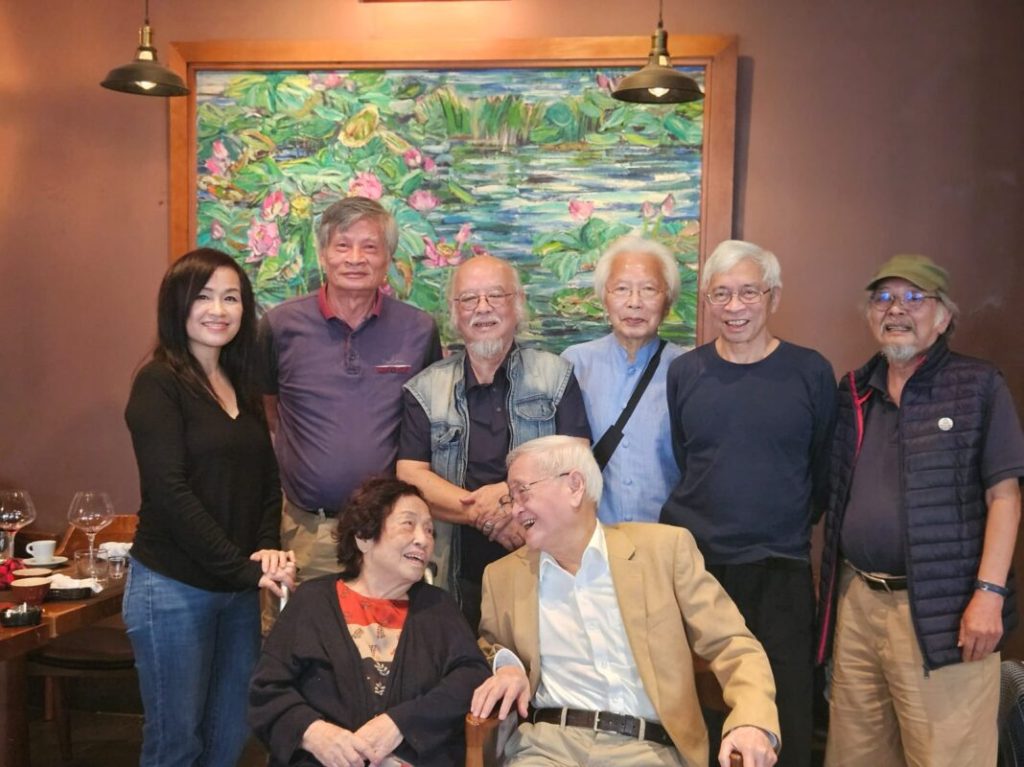 Anh Tiến Đức và anh Duy Nghĩa là những ông anh, đồng thời là đồng nghiệp của tôi từ thời VTV. Anh Nghĩa đi Pháp từ những năm 1980. Sau hơn 40 năm hai anh em mới gặp lại nhau. May mắn là anh Tiến Đức tìm được một quán ăn yên tĩnh, hầu như chỉ có nhóm chúng tôi, tránh được những hội “Dzô-Dzô” nên cuộc hội ngộ diễn ra rất ấm cúng, có nhiều chuyện để tâm sự. Ai cũng vui vì ít có dịp tập hợp được đông đủ như vậy. Bức ảnh chị Ân và Hiên cười hạnh phúc nói lên tất cả.