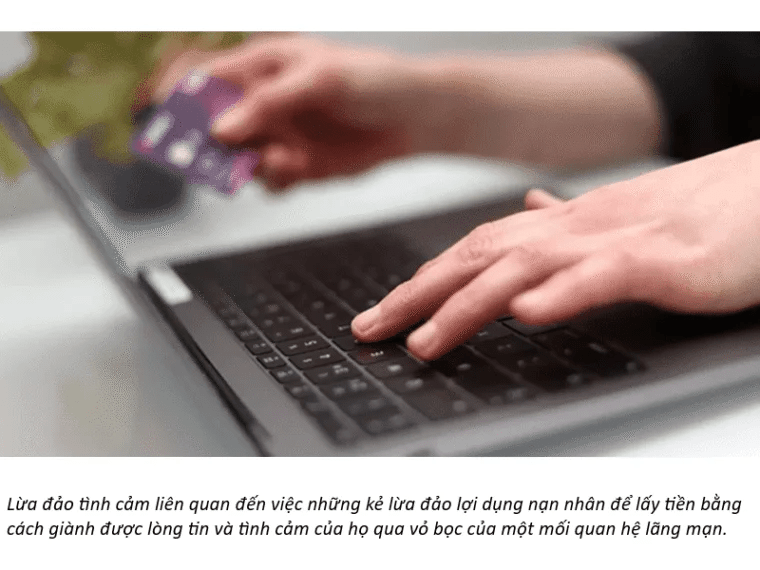 Lừa đảo tình cảm liên quan đến việc những kẻ lừa đảo sử dụng mối quan hệ lãng mạn để lừa nạn nhân lấy tiền bằng cách giành được lòng tin và tình cảm của họ.