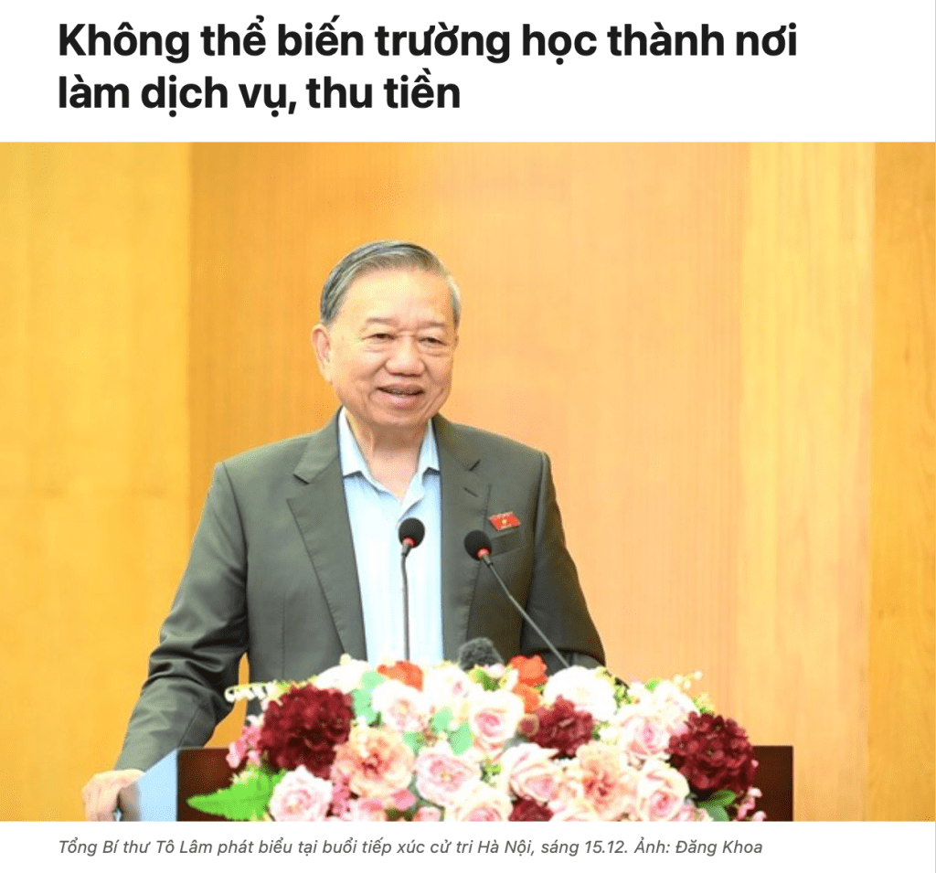 Đây là tình trạng có dấu hiệu đã vỡ trận với sự công nhiên thao túng hệ thống giáo dục, sử dụng học sinh như những con tin để làm tiền ngang ngược trên đầu phụ huynh, phá nát chương trình giáo dục quốc dân, biến nó từ một hệ thống quốc gia trọng đại bậc nhất trở thành cái đinh sắt để treo những “môn học” bát nháo đang mọc lên tràn lan và đổ bộ vào nhà trường như thác lũ”.