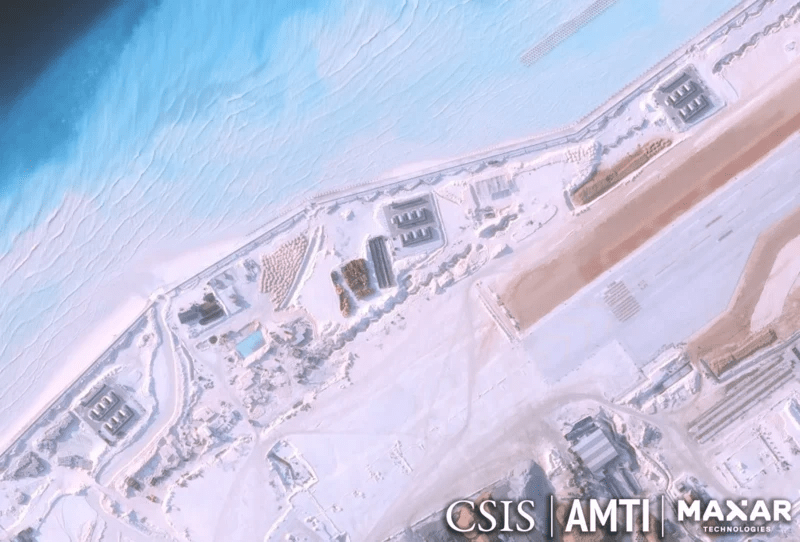 Ba đảo nhân tạo lớn nhất của Bắc Kinh ở quần đảo Trường Sa là Đá Vành Khăn (Fiery Cross Reef), Đá Subi (Subi Reef), và Đá Chữ Thập (Fiery Cross Reef), đều có hệ thống tên lửa chống hạm và phòng không, thiết bị laser và gây nhiễu, các đường hầm lưu trữ ngầm, cùng máy bay tiêm kích.