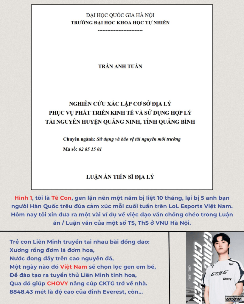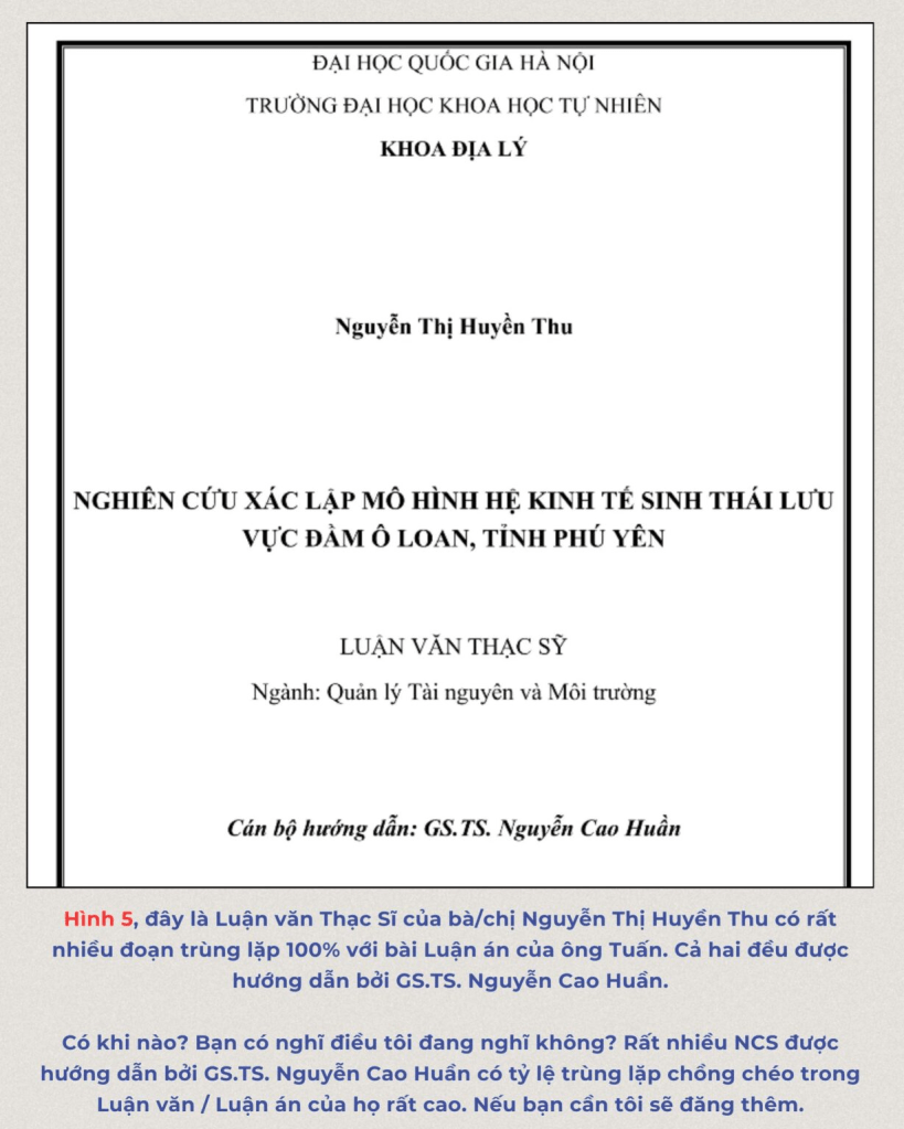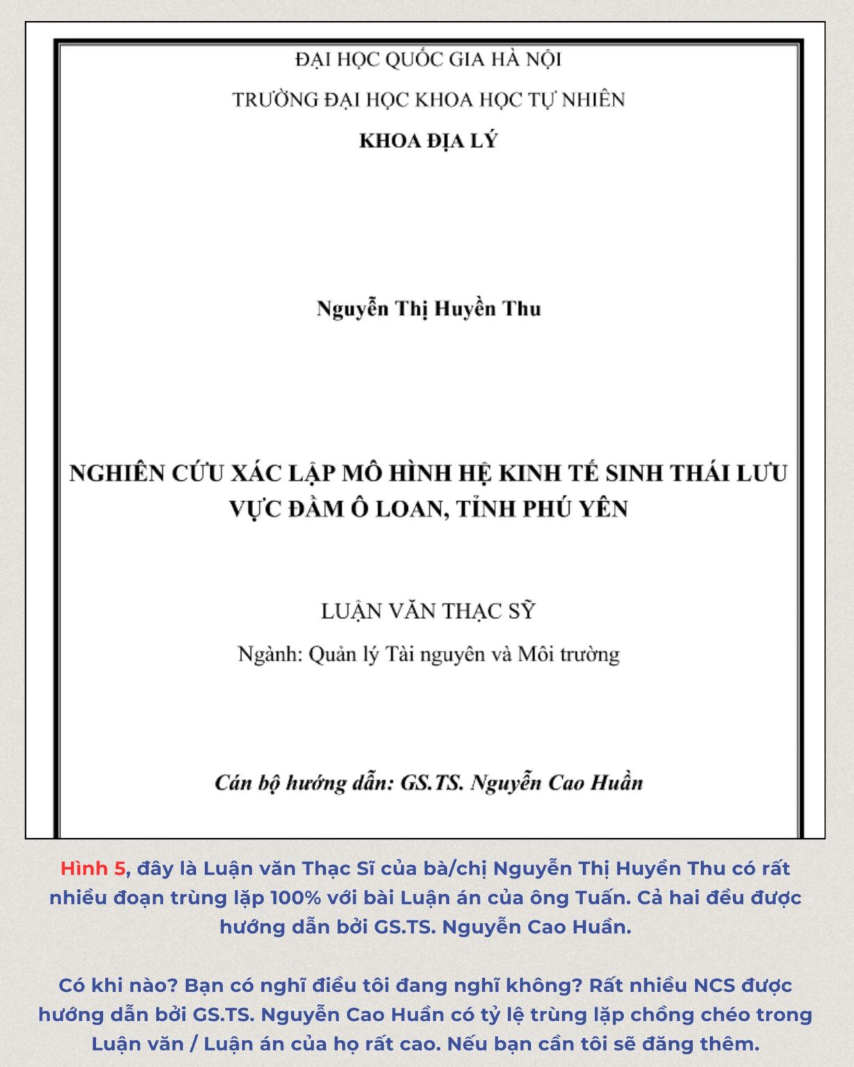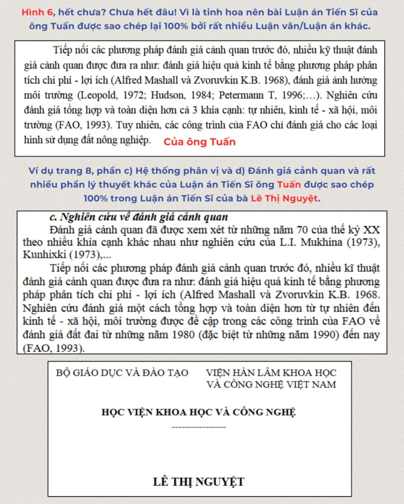 Nói lại lần nữa, ở đây tôi không cáo buộc ai, kể cả ông Tuấn, tôi chỉ nêu lên bằng chứng trùng lặp giống nhau đến từng câu chữ trong các Luận án Tiến sĩ và Luận văn Thạc sĩ ở VNU để bạn xem xét.
