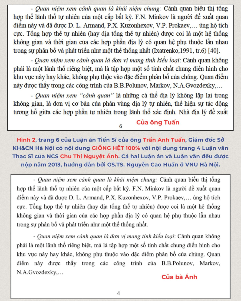 Bài viết này không nhằm kết luận hay quy kết trách nhiệm pháp lý đối với bất kỳ cá nhân nào. Mục tiêu duy nhất là trình bày các ví dụ trùng lặp văn bản được quan sát qua việc đối chiếu trực tiếp các Luận án Tiến sĩ và Luận văn Thạc sĩ đã được nộp tại Đại học Quốc gia Hà Nội, trong đó của Luận án Tiến sĩ của ông Trần Anh Tuấn, Giám đốc Sở KH&CN Hà Nội.
