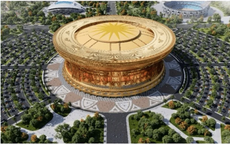 Sân Trống Đồng gợi lại bóng dáng sân hoa sen Evergrande – một giấc mơ khổng lồ đã sụp đổ.