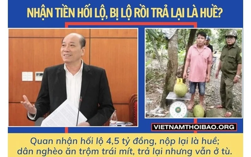 Quan nhận hối lộ 4,5 tỷ đồng, nộp lại là huề; dân nghèo ăn trộm trái mít, trả lại nhưng vẫn ở tù.
