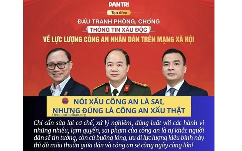 Mới đây báo chí và công an vừa có toạ đàm “đấu tranh phòng, chống thông tin xấu độc về lực lượng Công an nhân dân trên mạng xã hội”. Buổi tọa đàm này nhằm tìm cách “phản bác các quan điểm sai trái thù địch, các luận điệu xuyên tạc, bịa đặt, thông tin ảnh hưởng xấu đến uy tín của lực lượng Công an, phủ xanh thông tin tích cực trên không gian mạng”.