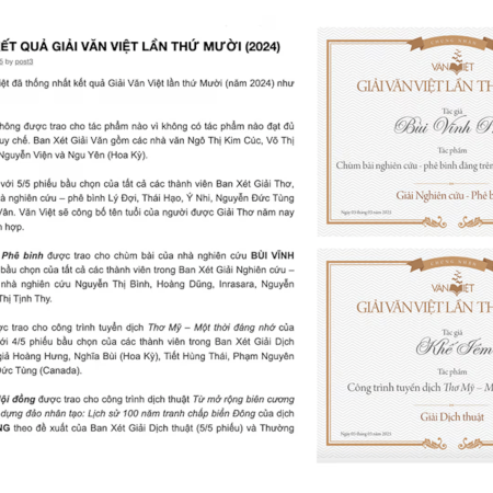 Giải Văn Việt 2024: Không công bố tác giả, tác phẩm đoạt Giải Thơ vì lí do an ninh